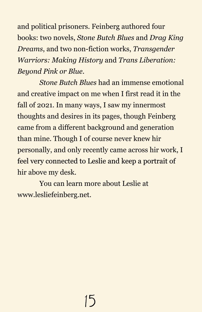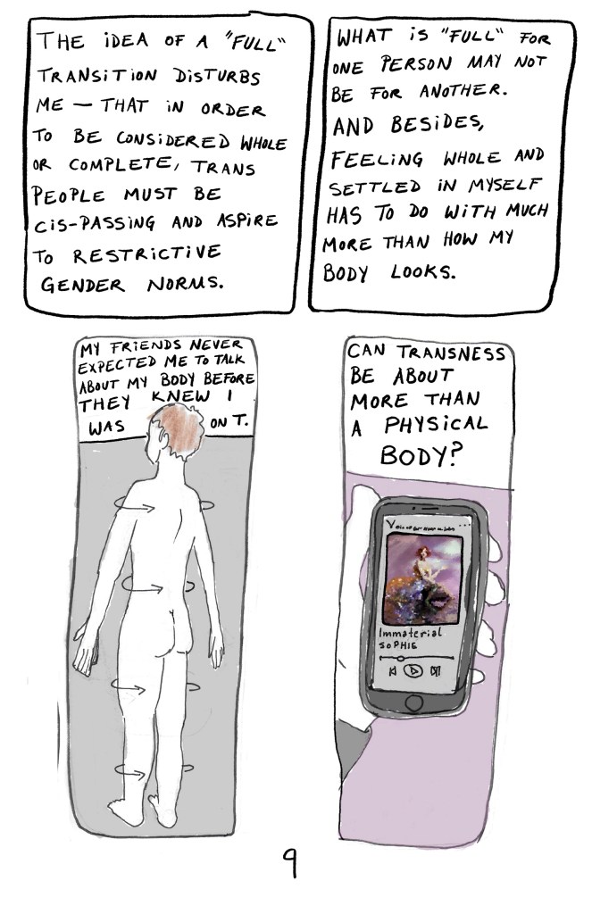 In Transit is an accompaniment to its film counterpart of the same name, and details my experience being a gender nonconforming teenager and young adult and my preliminary experiences with gender-affirming healthcare.